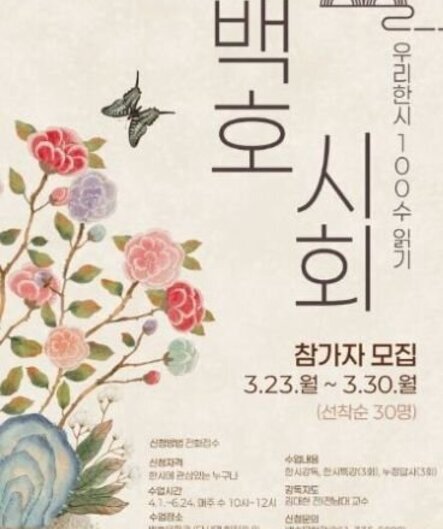 해마다 높은 만족도를 보이는 백호시회를 올해도 개최합니다. 올해는 우리한시 100수 읽기..