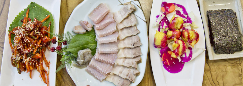 荣山浦Seonchang街一带有30多家斑鳐专营店。刺鼻的斑鳐搭配煮熟的猪肉和陈年泡菜便凑成了著名的斑鳐三合。再配一杯马格利酒,世上别无他求~ 荣山浦斑鳐是公认的健康食品。斑鳐可以做出斑鳐生鱼片、凉拌斑鳐、炖斑鳐、斑鳐汤以及只有在罗州才能品尝到的斑鳐麦芽汤等多种菜肴。