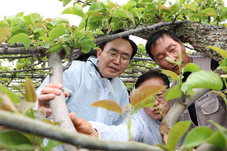 25.04.23 배꽃 개화기 저온, 서리피해 현장점검