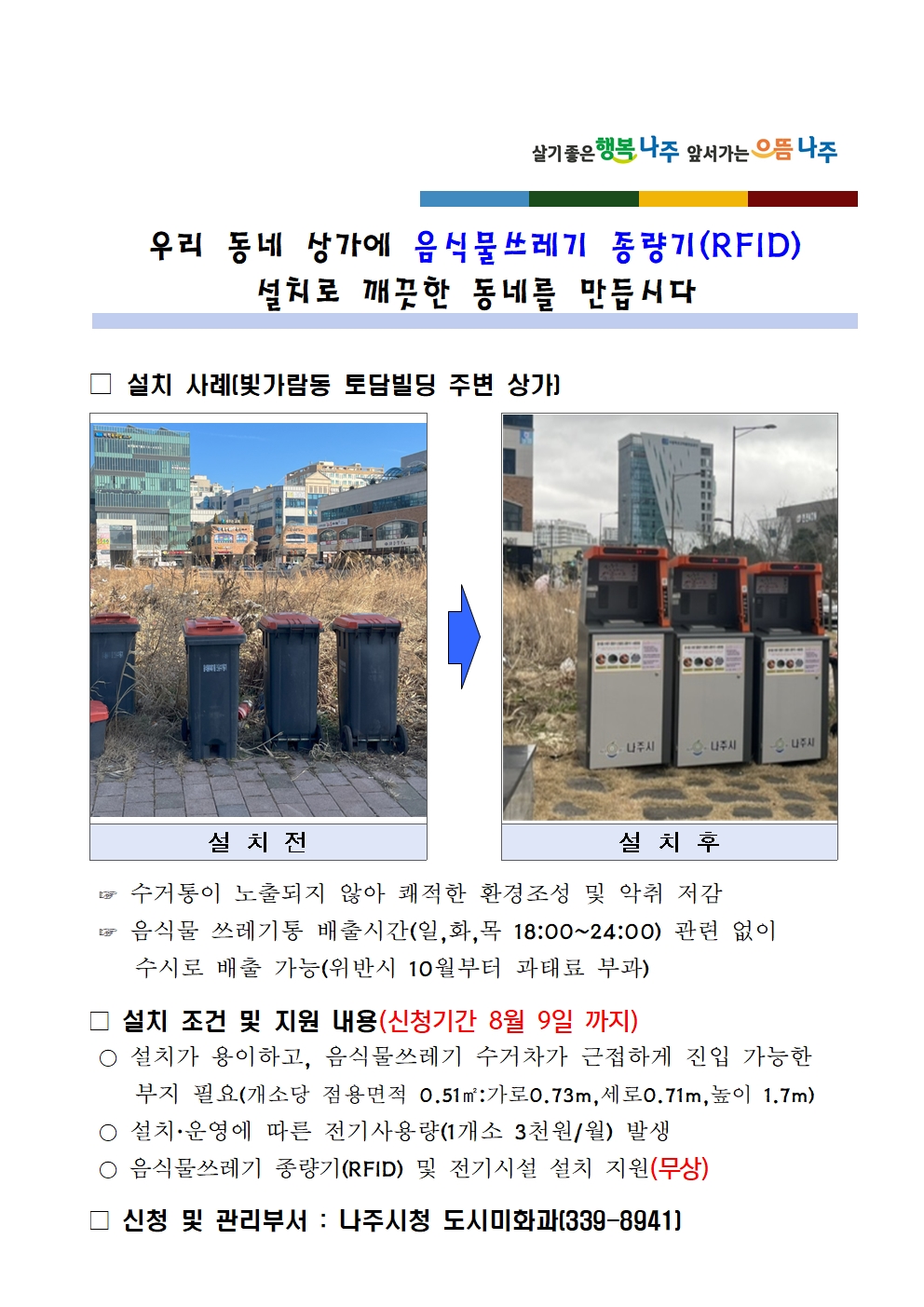 빛가람동 상가 음식물쓰레기 종량기(RFID) 설치 신청 안내